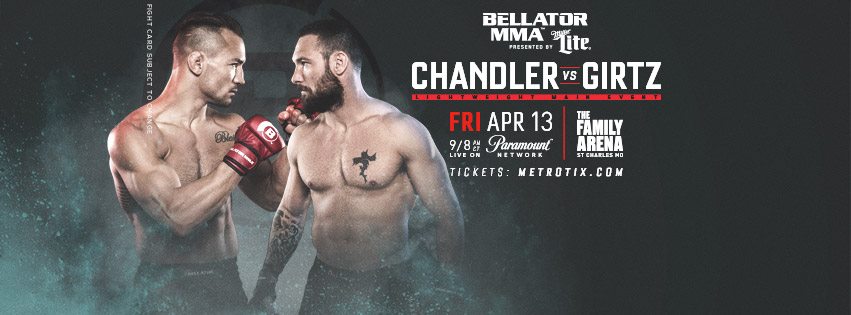 Chandler 31, is a Missouri, native and 2 time Bellator Lightweight champion. The former Missouri Tiger has won 5 of 6, coming off a January, unanimous decision victory over Goiti Yamauchi. Girtz 33, from Minnesota, and trains out of the Grudge Training Center in Colorado. Girtz ended a 3 fight skid at Bellator 190, with a first round knock out of Luka Jelcic.