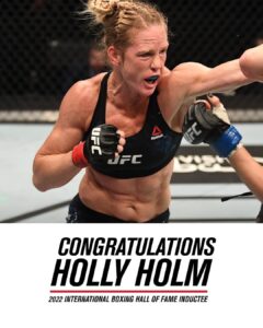 Holm retired from boxing with a (33-2-3) record while being a 14-time world champion across three-divisions. During her Boxing career Holm picked up notable victories over Christy Martin, Anne Sophie Mathis, Mary Jo Sanders, Mia St. John, & Mary McGree.  This past August Holm was inducted into the New Mexico sports Hall of Fame an honor she earned in 2019 but was delayed due to Covid-19.