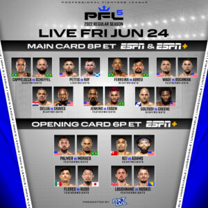 Competitors in action will include 2021 PFL Heavyweight champion Bruno Cappelozza, former WEC & UFC Lightweight champion Anthony Pettis, two-time PFL champion Lance Palmer, and 2021 featherweight finalist Chris Wade.