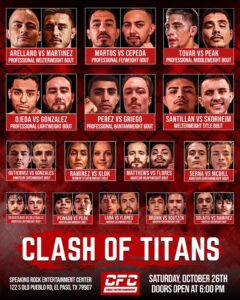 October 26th at Speaking Rock Entertainment Center in El Paso, TX Combat Fighting Championships presents “Clash of Titans”.