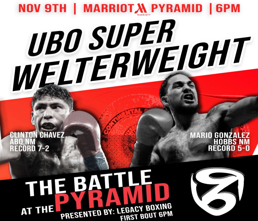 Professional Boxing is returning to Albuquerque’s Marriott Pyramid. In the main event unbeaten Mario Gonzalez will square off with Clinton “The Native Kid” Chavez for a UBO Super Welterweight title.