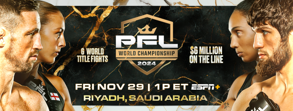 PFL Global season champions will be crowned at Heavyweight, Light Heavyweight, Welterweight, Lightweight, Featherweight, & Women’s Flyweight division. At Heavyweight Denis Goltsov wants the third time to be the charm after falling short on two occasions while Oleg Popov is on, and incredible 17-fight win streak. Impa Kasangany looks to make it back to back Light Heavyweight championships while Dovlet Yagshimuradov looks to become the first champion form Turkmenistan. Someone’s unbeaten record has to take a blemish as unbeaten Russians Magomed Umalatov & Shamil Musaev battle for the Welterweight crown. At Lightweight former Bellator champion Brent Primus faces surging Russian Gadzhi Rabadanov. The Women’s Flyweight title fight is the co-main where unbeaten Thai striker Dakota Ditcheva faces former UFC title challenger Tatlia Santos. In the main event, at Featherweight Brendan Loughnanae looks to become a two-time champion when he faces unbeaten Russian Timur Khireiev.