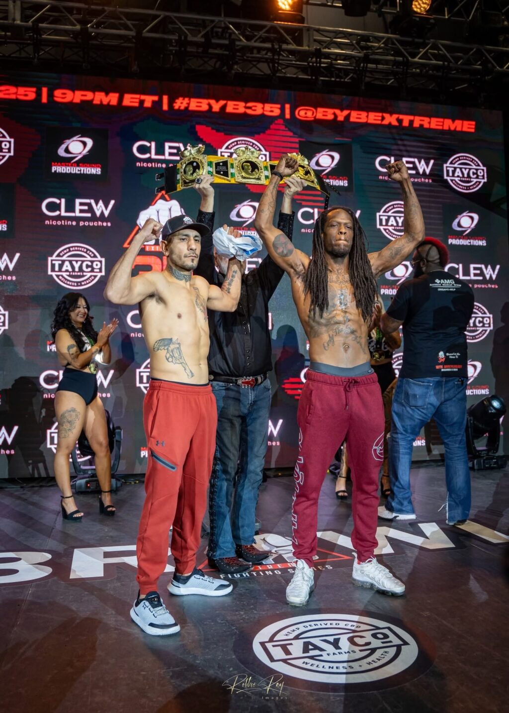 The new main event elevated from the co-main event is a five round affair for the vacant BYB Welterweight Championship. Argentina’s Walter Saravia (146.8) & St. Louis’s Javon Wright (145.2) both successfully made weight.