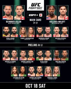 UFC Vancouver ‘Prelims’ Card On ESPN+ (4 p.m. ET):