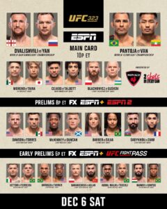 UFC 323 PPV Main Card on ESPN+ PPV (10 p.m. ET):