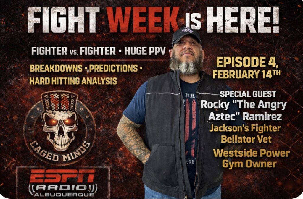 Caged Minds Fight Hour every Saturday morning on ESPN Radio Albuquerque 1017 The Team. This past week we took a trip down memory lane with Jackson’s OG Rocky Ramirez. He a Bellator vet and owner of Westside Power Gym.
