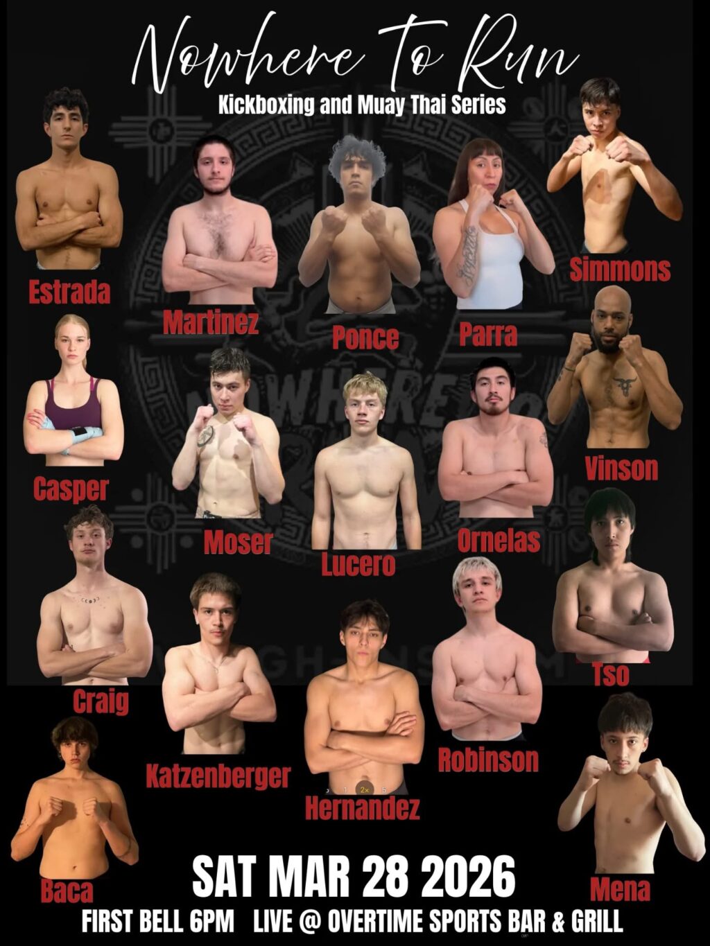 Amateur kickboxing returns to the Duke City this Saturday as Nowhere to Run XVI takes over the Overtime Bar & Grill. Fighters hit the scales Friday night at the official weigh-ins, which were also streamed live on our YouTube page.