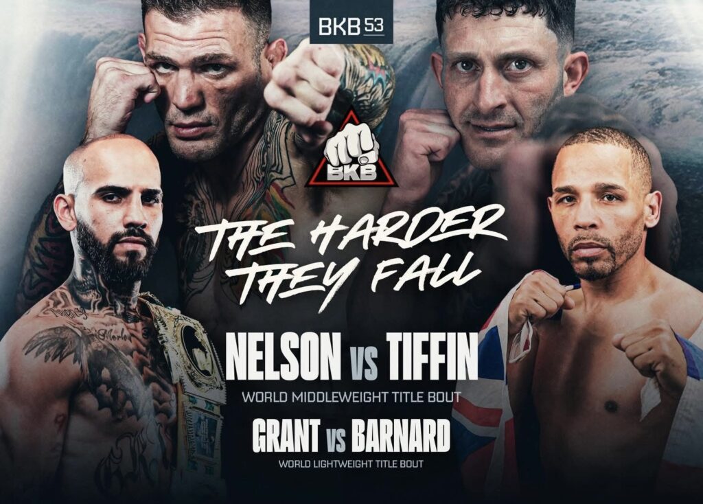 In the main event, middleweight champion LT Nelson proved once again why he sits atop the BKB rankings, stopping Mark Tiffin in the opening round to retain his title and solidify his status as a two-division king. The fight wasted no time heating up, as Tiffin stunned Nelson early with a right uppercut in the clinch that sent the champion to the canvas. Nelson, unfazed, responded immediately—returning fire with a sharp left hook to even the score. From there, Nelson took control, applying relentless pressure with hooks and straight punches. A perfectly timed left hook followed by a crushing right uppercut dropped Tiffin for a second time, sealing the finish at 1:53 of round one.